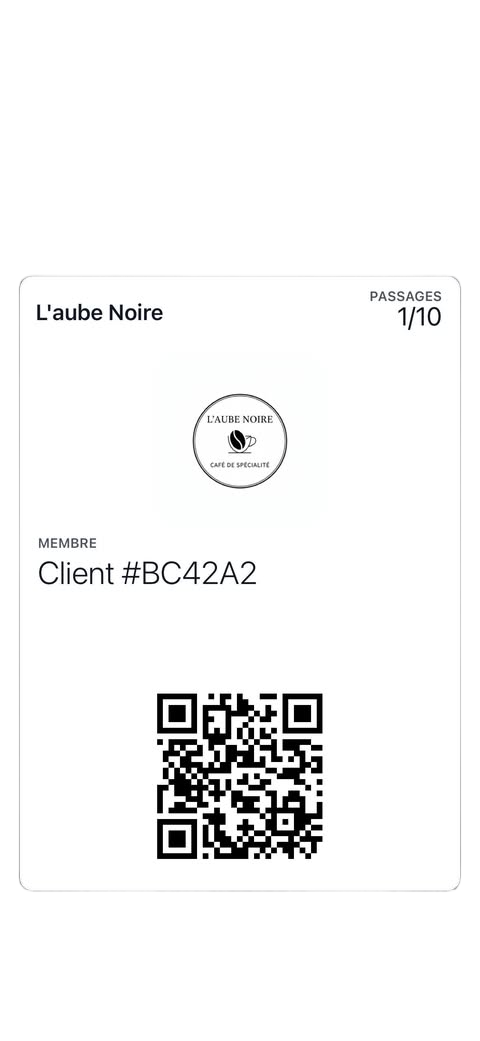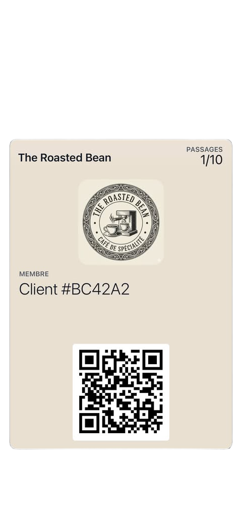 Une carte de fidélité digitale intégrée nativement. Sans application. Sans Compte à créer. Sans friction.